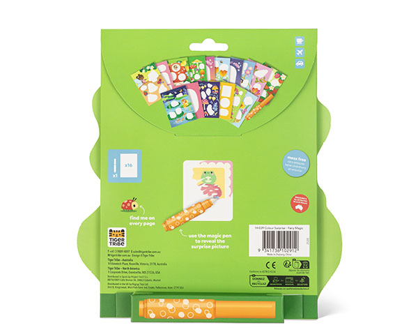 ¡Ofrece a los niños una experiencia creativa llena de asombro con Colour Surprise Fairy Magic! Gracias al rotulador de tinta invisible, las pequeñas manos revelan como por arte de magia preciosas ilustraciones de hadas y una multitud de detalles ocultos. Un simple trazo del marcador basta para que aparezcan los colores, sin ningún riesgo de manchas. Práctico y portátil, este cuaderno es perfecto para entretener a los niños en viajes, restaurantes o momentos tranquilos en casa. El rotulador especial no marca ni la piel, ni la ropa, ni los muebles: ¡creatividad garantizada, cero desorden! Una actividad suave y lúdica que fomenta la motricidad fina, la concentración y la imaginación, ofreciendo además un primer acercamiento al coloreado de forma autónoma. Contenido: 16 páginas ilustradas con temática de hadas y motivos ocultos 1 rotulador mágico revelador Edad recomendada: 25 años