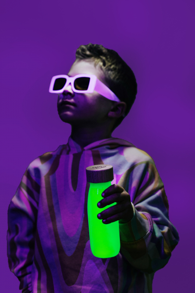 Enciende la magia. Llevamos un paso más allá el concepto de nuestras clásicas Float con esta nueva serie de botellas, que incluyen pigmentos fluorescentes y fosforecentes irresistibles para los más pequeños. Basta con cargarlas en una fuente de luz natural o en luz negra, llevarlas a un lugar oscuro y… ¡empieza el espectáculo! Incluye librito de instrucciones. Dimensiones de cada botella: 14 x 4 cm. No sumergir en agua ni exponer al sol durante largas horas. Para su higiene aconsejamos pasar una toallita o trapo húmedo. +3 meses