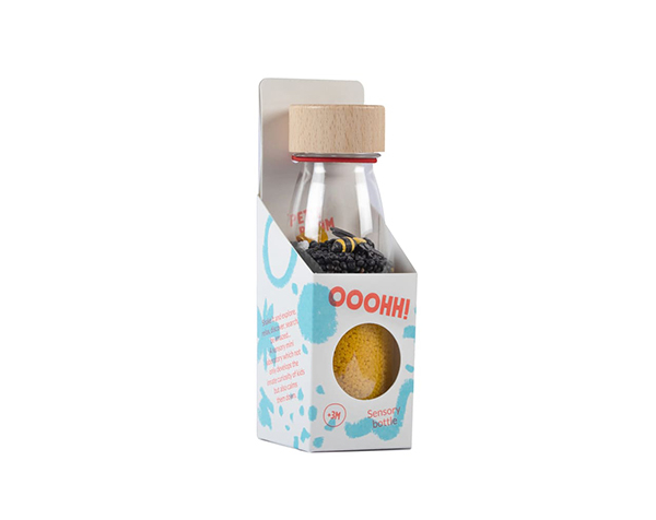 Asómbrate y déjate transportar al mágico reino de las abejas.Cuántas flores deben visitar para conseguir un kilo de miel? Obsérvala de cerca, entra en su casa, fíjate como baila pero ten cuidado no te vaya a picar!! Pssssssssst! Mirar, agitar ¡y escuchar! Tan simple y tan efectivo como eso. Los pequeños objetos de la serie SOUND BOTTLE son un auténtico espectáculo para los más pequeños. A la identificación visual de las piezas contenidas se une la estimulación auditiva, especialmente importante en el primer año de vida de los bebés. Ayuda en el aprendizaje de la discriminación de sonidos: de los más suaves a los más fuertes, asociando cada sonido a un significante. Estimula la motricidad gruesa: apilando las botellas, agitándolas, haciéndolas rodar Cuando son más mayores los niños y niñas pueden representar diferentes escenarios y fomentar el juego imaginativo. Dimensiones de cada botella: 14cm x 4cm. No sumergir en agua ni exponer al sol durante largas horas, para su higiene aconsejamos pasar una toallita o trapo húmedo +3 meses