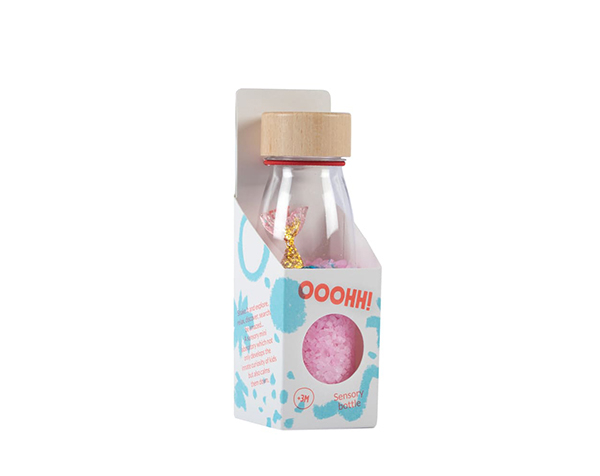 Deja volar tu imaginación buceando por las profundidades del océano mágico de Petit Boum. Te espera una sirena muy juguetona, su canto y su belleza te hipnotizarán. Mirar, agitar ¡y escuchar! Tan simple y tan efectivo como eso. Los pequeños objetos de la serie SOUND BOTTLE son un auténtico espectáculo para los más pequeños. A la identificación visual de las piezas contenidas se une la estimulación auditiva, especialmente importante en el primer año de vida de los bebés. Ayuda en el aprendizaje de la discriminación de sonidos: de los más suaves a los más fuertes, asociando cada sonido a un significante. Estimula la motricidad gruesa: apilando las botellas, agitándolas, haciéndolas rodar Cunado son más mayores los niños y niñas pueden representar diferentes escenarios y fomentar el juego imaginativo. Dimensiones de cada botella: 14cm x 4cm. Edad recomendada: + 3 Meses No sumergir en agua ni exponer al sol durante largas horas, para su higiene aconsejamos pasar una toallita o trapo húmedo.