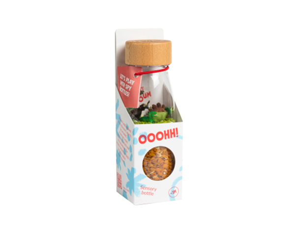 ¡Pequeños exploradores! Los dinosaurios cobran vida creando un efecto visual cautivador. Al agitar la botella pueden vivir una experiencia fascinante y relajante. ¿Puedes decir sus nombres? Un microcosmos en cada botella En cada una de las Spy Bottles, recreamos un ambiente natural, con animales que se convertirán en protagonistas de la imaginación de vuestros hijos. Disfrutarán identificando los animales, imitándolos, contándolos, creando historias y cuentos o aprendiendo sobre los distintos ecosistemas. ¡Un auténtico imán para la curiosidad infantil! Tamaño: 15,5 x 4,5 x cm Capacidad: 250 ml Totalmente selladas con doble tapón de seguridad +18 meses
