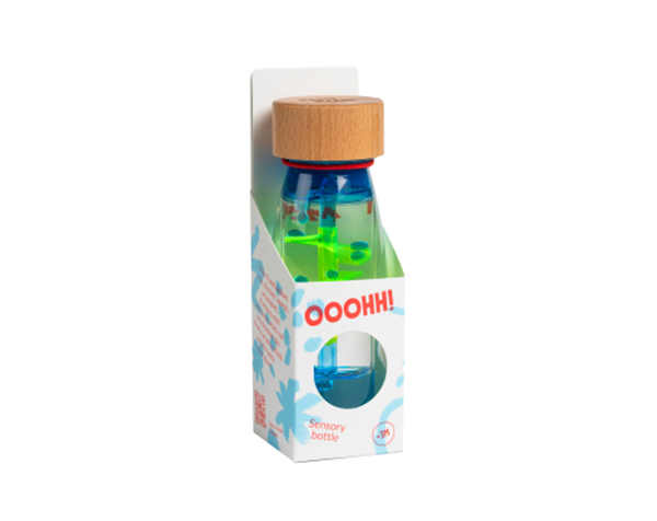 Una danza tranquila y envolvente. Un suave baile visual de gotas de colores estimula los sentidos, promueve la relajación y el disfrute de los más pequeños. Ensueños para flotar ¿Cómo sería atrapar el tiempo y la calma dentro de una botella? Con esta serie hemos querido averiguarlo. Damos un paso más en la búsqueda de nuevos confines sensoriales, con un nuevo efecto relajante que les va a encantar. Cada vez que giren la botella , ¡Comienza el viaje! Unas gotas mágicas se forman y empiezan a danzar para capturar su imaginación y les ayuda a sentirse relajados. Complementa con MAGIC LAMP Tamaño: 15,5 x 4,5 x cm Capacidad: 250 ml Totalmente selladas con doble tapón de seguridad +3 meses