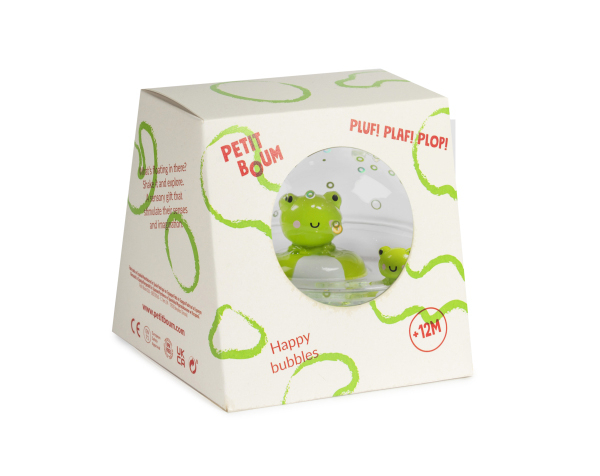 Tres bolas sensoriales únicas, con nuestro toque inconfundible, donde ranas, cangrejos y patitos nadan junto a su bebé entre destellos mágicos. ¡Chapoteos, sorpresas y momentos de diversión en el baño o en la piscina! Un universo sensorial rodea a nuestros nuevos amigos dentro de su propia burbuja flotante. Para jugar, explorar y maravillarse durante la hora del baño o en la piscina. Favoreciendo la concentración y motricidad fina. Tamaño: 10 cm Peso: 260 gr Composición: Plástico +6 meses